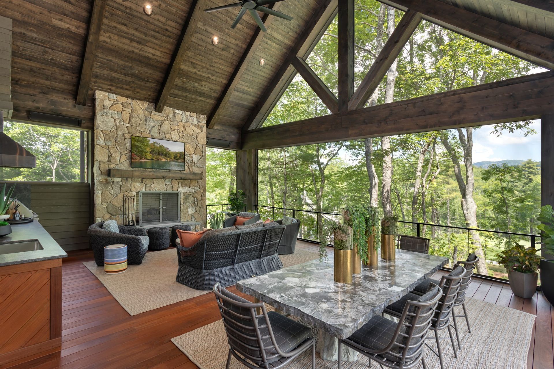 The kitchen boasts Sub Zero/Wolf appliances and custom cabinetry, complemented by an outdoor kitchen for outdoor entertaining. With energy-efficient HVAC systems and tankless water heaters, sustainability is integrated seamlessly. Don’t miss the chance to experience modern living in High Hampton.