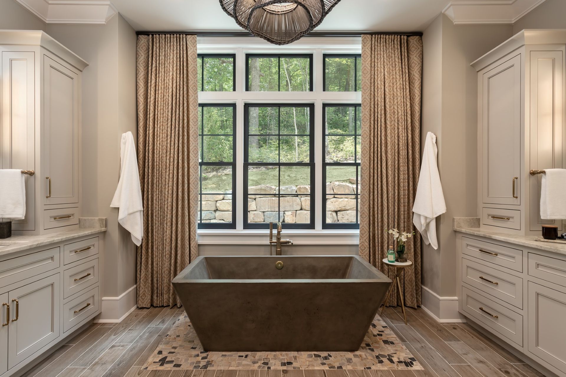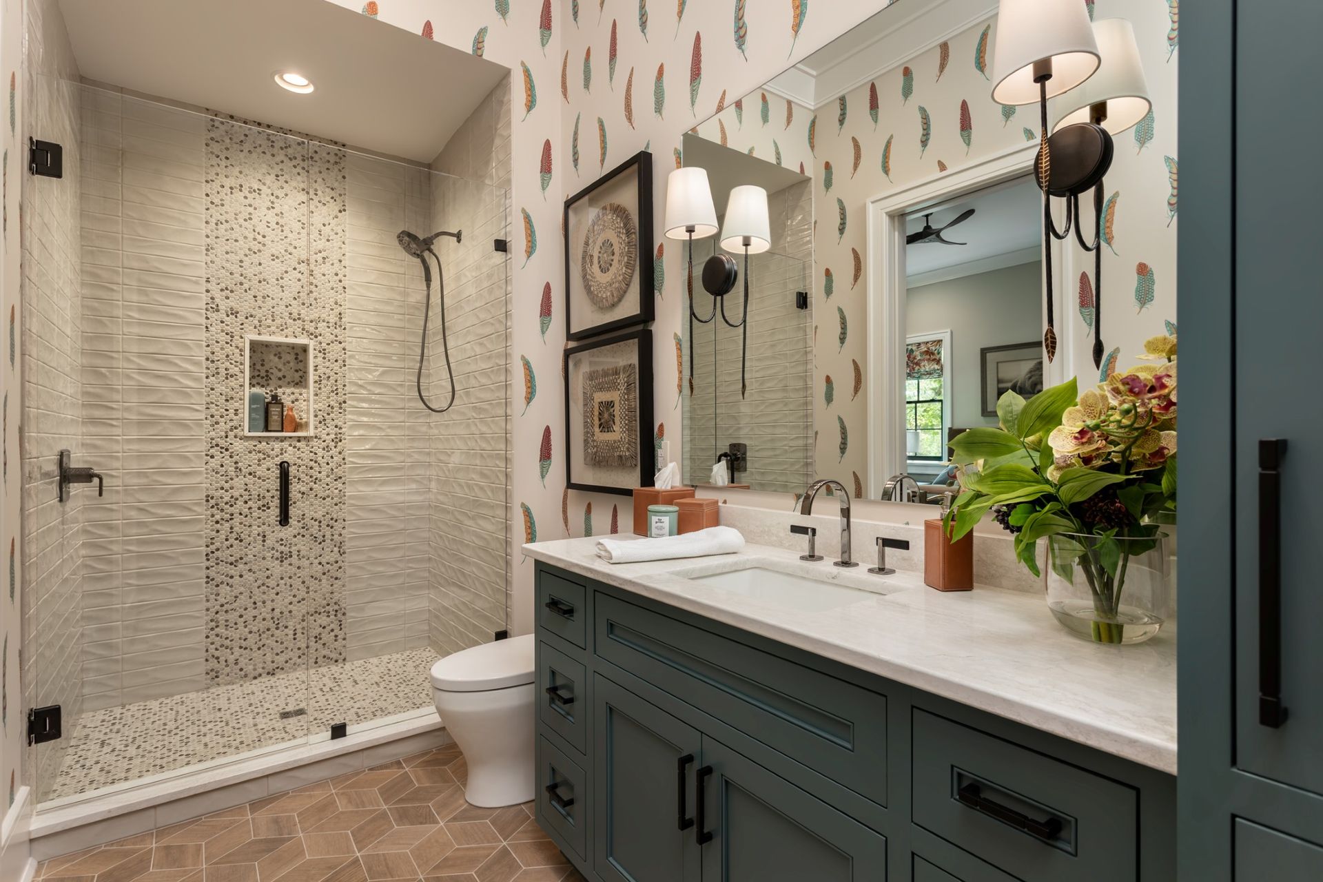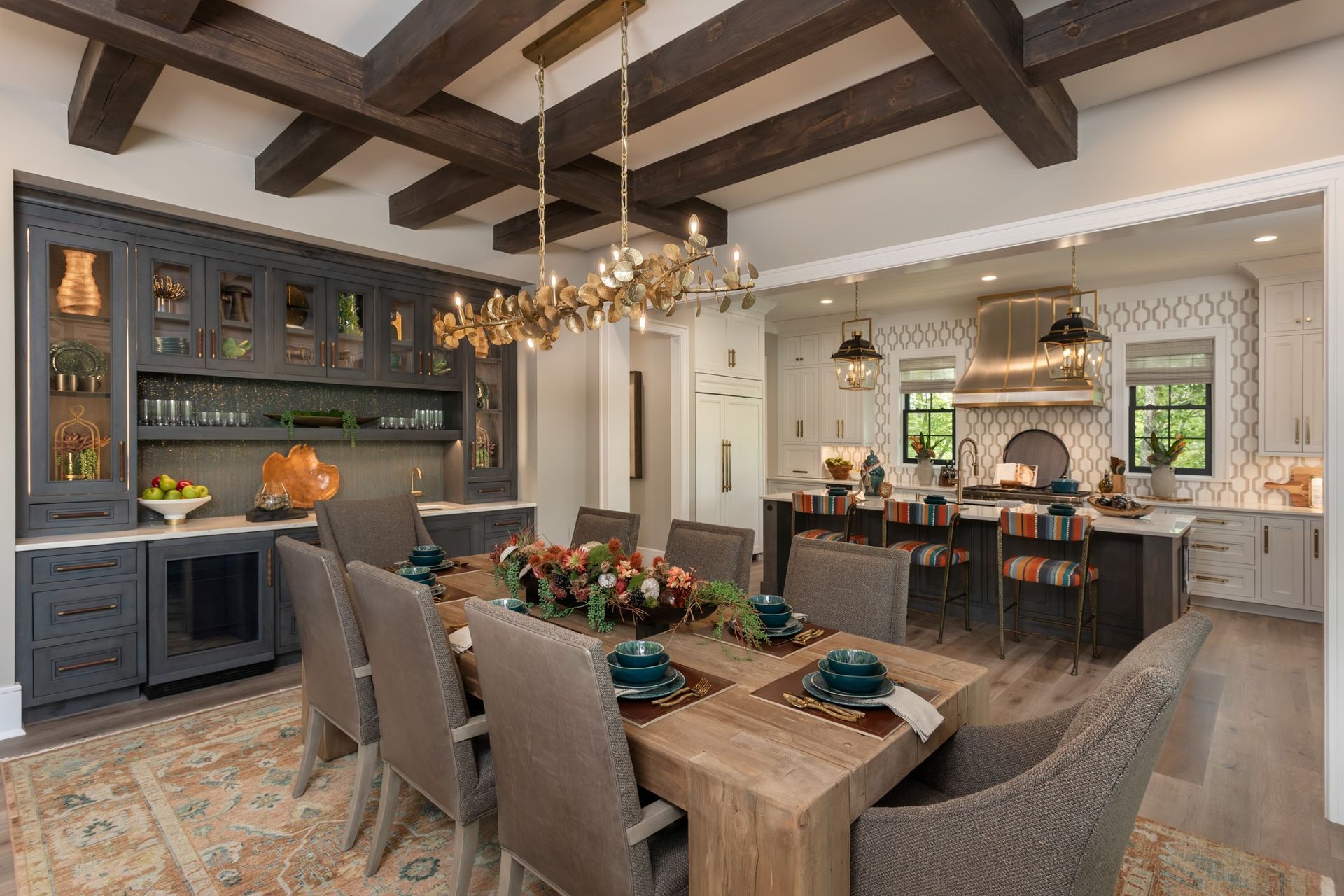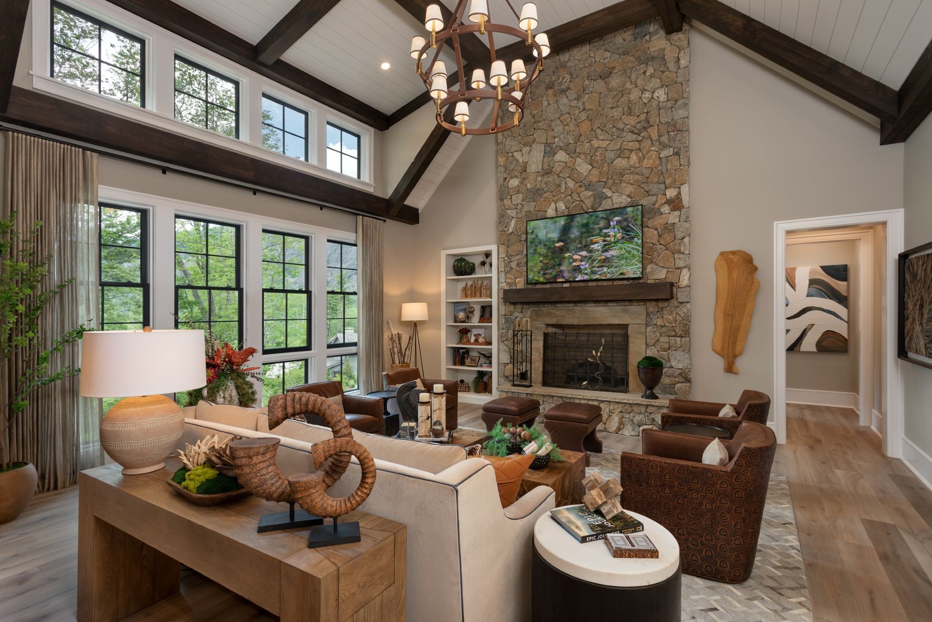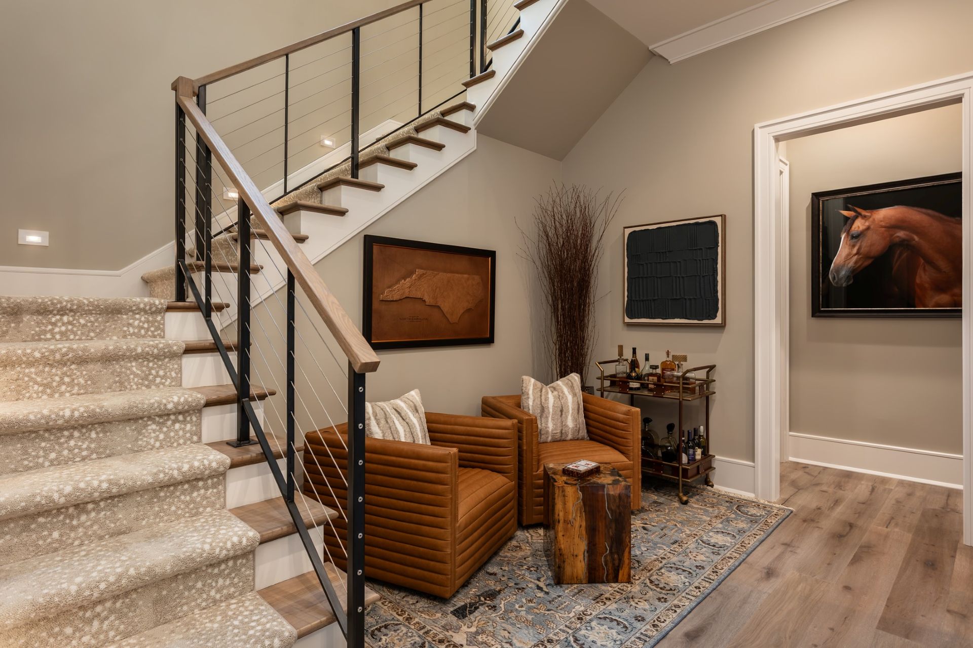 Introducing the High Hampton Idea Home by Dillard-Jones Builders. This residence seamlessly combines luxury and practicality. Featuring engineered hardwood floors, a golf simulator, home office, and gym, it offers both relaxation and productivity.